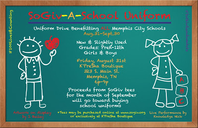 SoGiv, a non-profit apparel company, is hosting a school uniform drive Friday, August 31, 2012 August 31st, from 6p-9p at K’PreSha Boutique (323 S. Main St. Memphis, TN) during South Main’s Trolley Night Event.